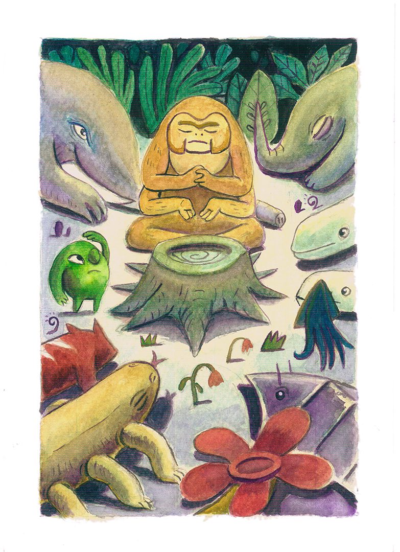 Melalui pendekatan visualnya yang pseudo-naif dan sureal, Ferdianadi menggambarkan kesedihan mendalam dan kerentanan makhluk liar tersebut. Ia menekankan bahwa kita sebagai manusia adalah penyebab utama hilangnya rumah mereka, pohon-pohon yang ditebang tanpa ampun.